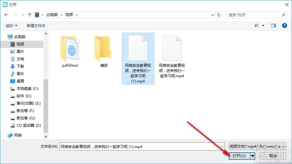 2.点击添加视频文件之后,下一步会打开一个选择视频文件的界面,我们根据自己的需求来选择之后点击右下角的打开按钮。