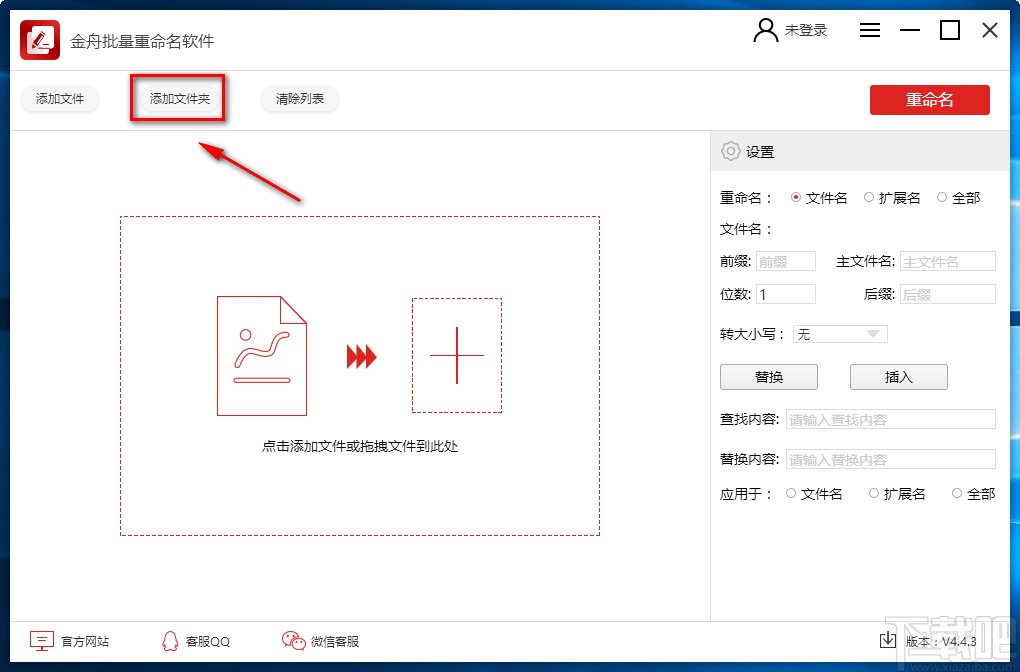 1.首先打开软件,在软件界面的左上角找到“添加文件夹”选项,点击该选项进入到文件添加页面。