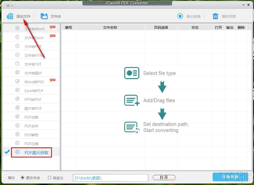 iCareAll PDF Converter是一款非常实用的PDF处理工具,在这款软件中有非常丰富的PDF文件处理功能,包括文件格式的转换和PDF分割、合并、压缩等功能,都是可以帮助用户在使用电脑的过程中处理PDF文件的。很多时候我们会需要用到提取PDF文件图片的功能,将PDF文件中的图片单独提取出来,这样的话就可以用到iCareAll PDF Converter这款软件中的PDF图片获取功能来进行提取了,接下来小编就跟大家分享一下具体的操作方法吧,还有不知道要如何操作的朋友可以一起来看看。