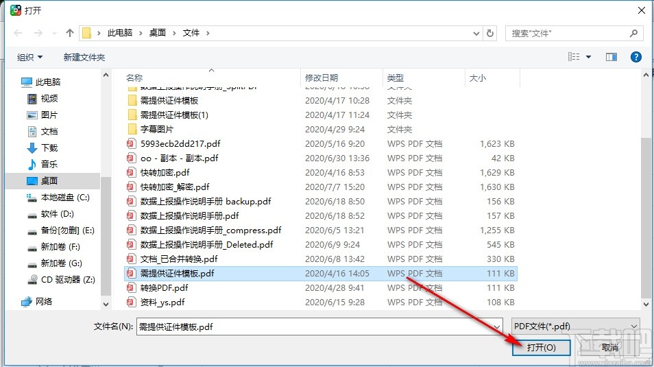 2.点击这个添加文件按钮之后在界面中选择想要提取图片的PDF文件,选择之后点击右下角的打开按钮。