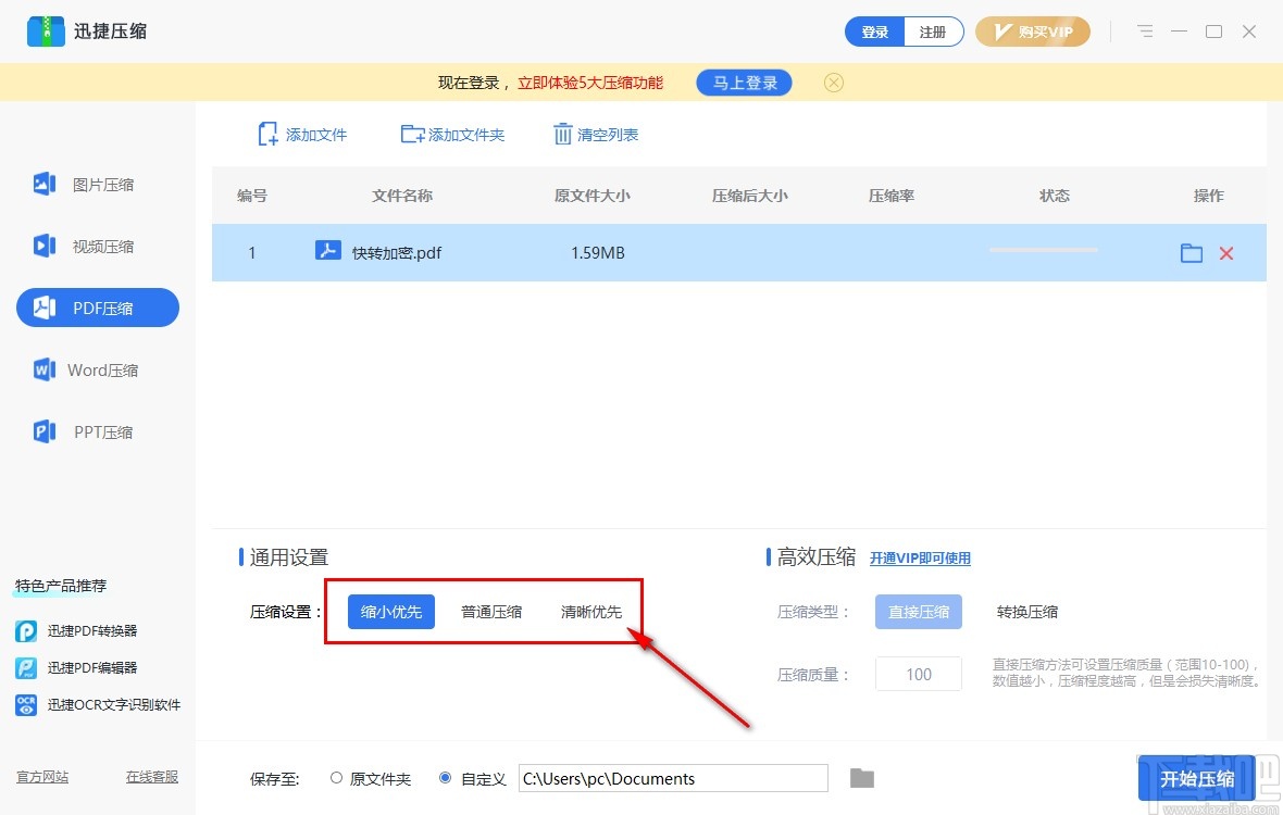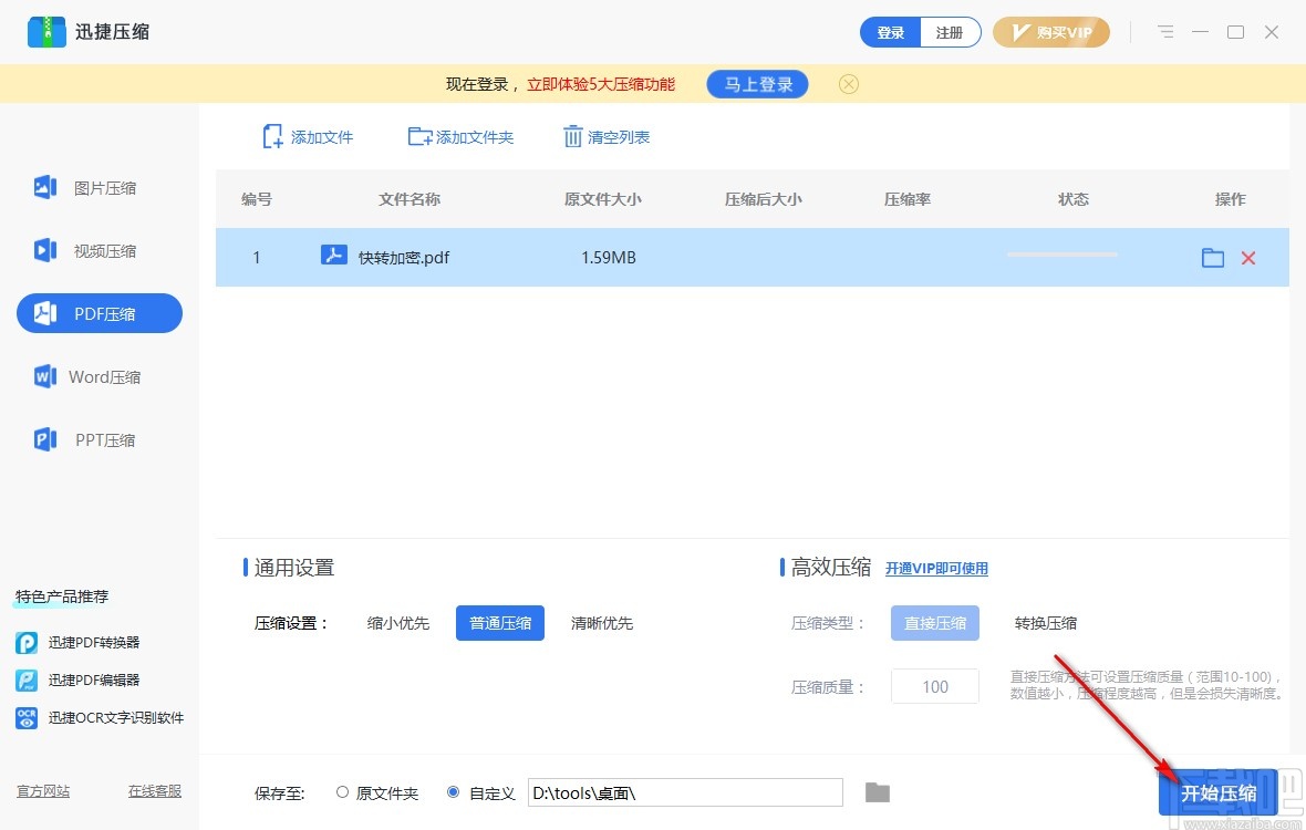 使用上述教程中的操作方法我们就可以通过迅捷压缩这款软件来压缩PDF文件了,还有不知道要如何操作的朋友赶紧试一试这个方法吧,希望这篇教程能够帮助到大家。