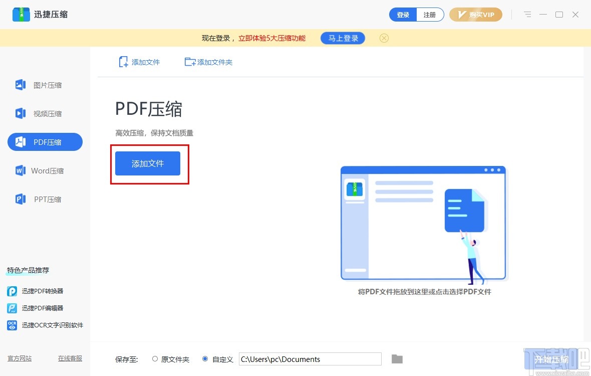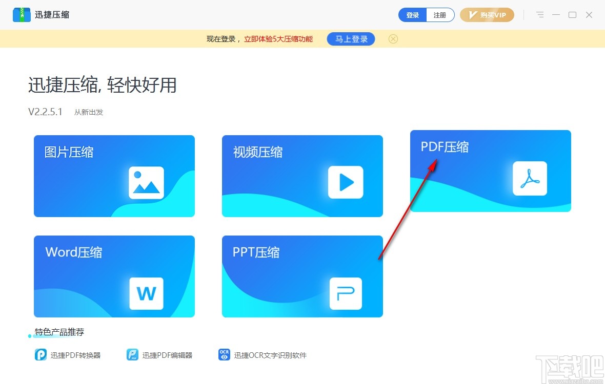 迅捷压缩是一款非常好用的压缩工具,通过这款压缩软件我们能够对多种类型的文件进行压缩处理,包括视频、图片、PDF文件等,在我们使用电脑的时候要储存这些文件的话就需要将文件压缩之后再进行储存,这样能够减少文件对磁盘空间的占用,很多用户会需要用到压缩PDF文件的功能,那么接下来小编就跟大家分享一下使用迅捷压缩这款软件来压缩PDF文件的具体操作方法吧,感兴趣的朋友不妨一起来看看小编分享的这篇方法教程,希望这篇方法教程能够对大家有所帮助。