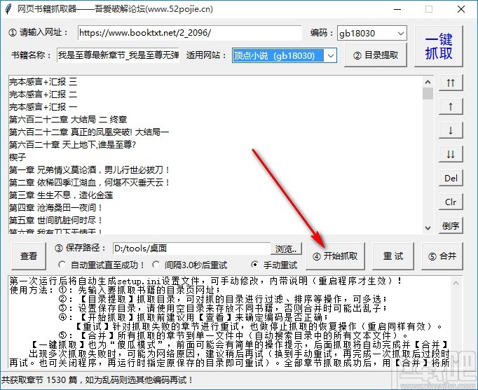 使用上述教程中的操作方法我们就可以通过网络书籍抓取器这款软件来下载网页小说了,有需要的朋友赶紧试一试这个方法吧,希望这篇方法教程能够对大家有所帮助。