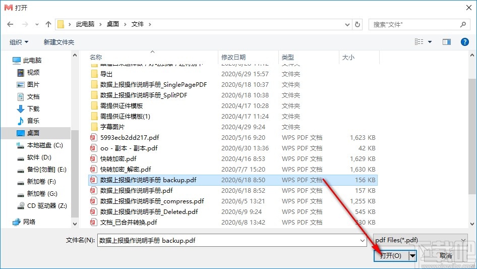3.点击添加文件按钮之后,在出现的选择文件界面中,选择目标PDF文件之后,点击右下角的打开按钮就可以成功添加文件了。