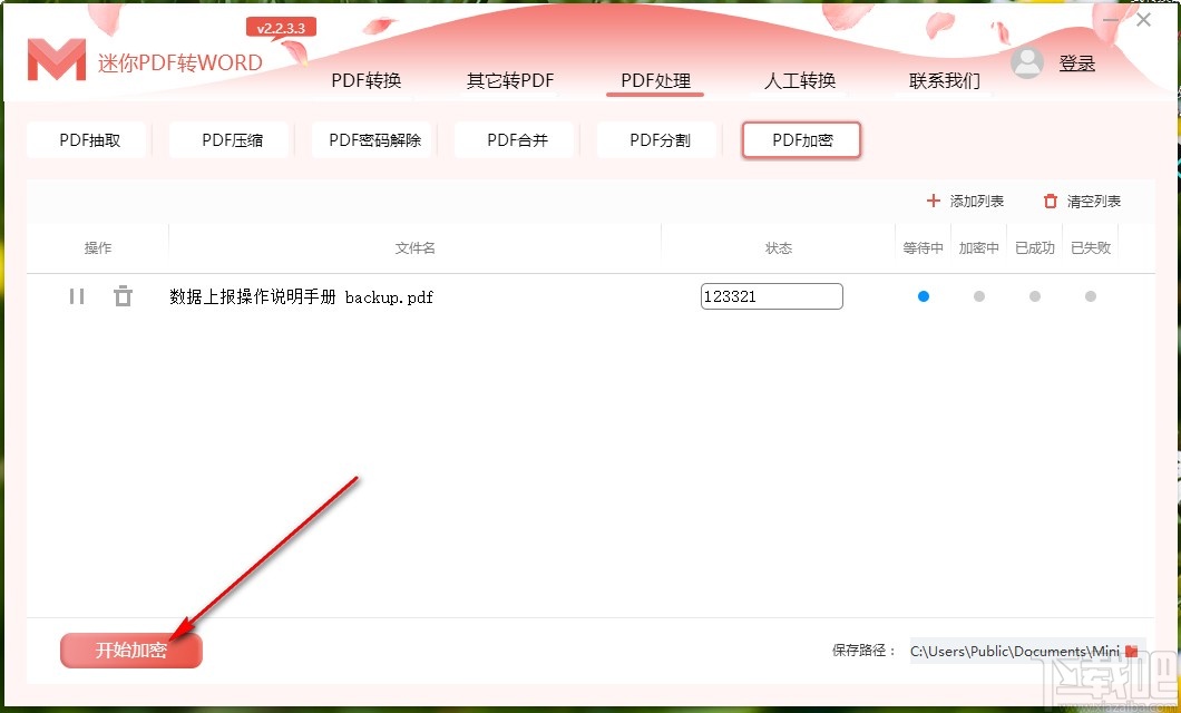 使用上述教程中的操作方法我们就可以通过迷你PDF转WORD这款软件来加密PDF文件了,有需要的朋友赶紧试一试这个方法吧,希望这篇方法教程能够帮助到大家。