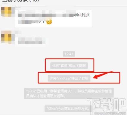 4.点击这个从群聊中移除选项之后,就可以成功将选择的这个群成员移出群聊了,在群聊的聊天界面可以看到移除群成员的操作提示。