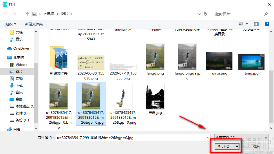 3.在文件添加页面中,我们找到需要添加水印的图片文件后,再点击页面右下角的“打开”按钮即可将文件添加到软件中。