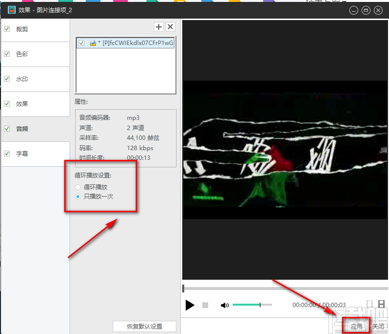 6.接着在页面左边找到“循环播放设置”选项,我们根据自己的需要在其下方对循环播放设置进行选择,之后再点击页面右下角的“应用”按钮即可。