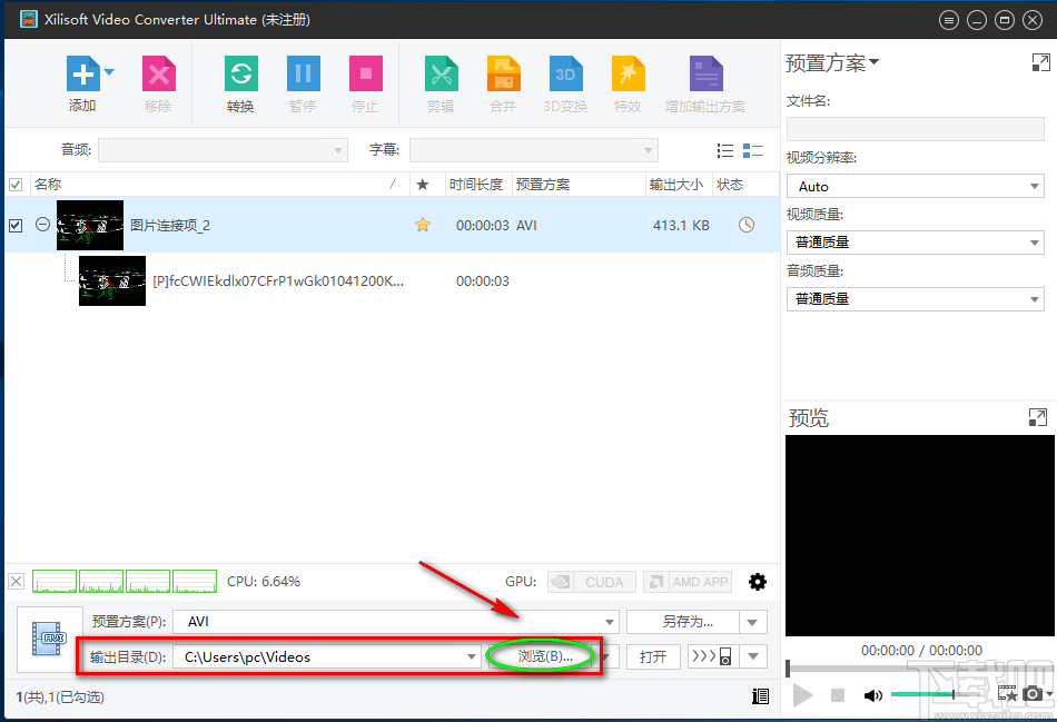 7.接下来回到软件界面上,在界面左下角找到“输出目录”选项,该选项后面有一个“浏览”按钮,我们点击该按钮就可以进入到文件保存路径选择页面。