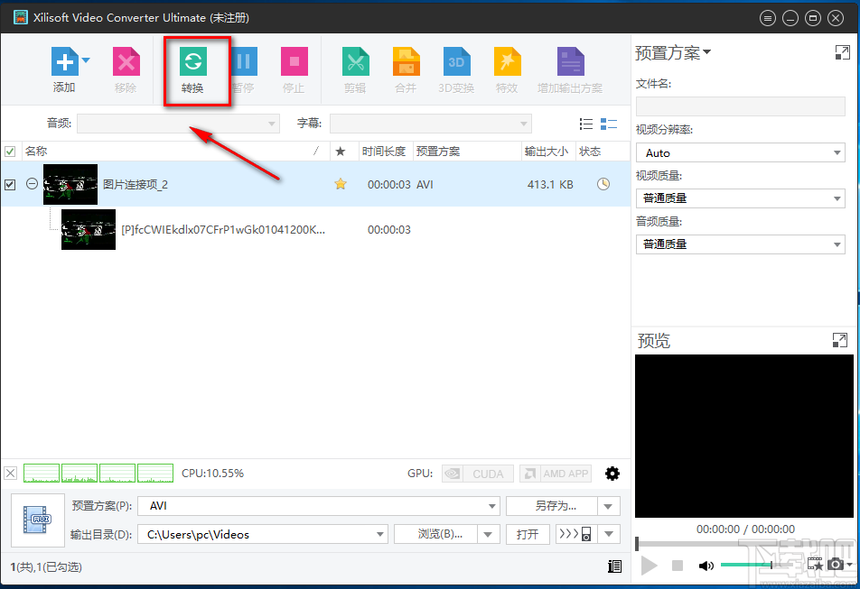 9.完成以上所有步骤后,我们在界面左上方找到“转换”按钮,点击该按钮就可以开始给视频添加背景音乐,并将其保存在指定的文件夹中。