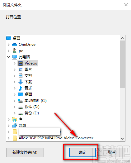 8.在文件保存路径选择页面中,我们选中文件的保存位置后,再点击页面右下角的“确定”按钮即可。