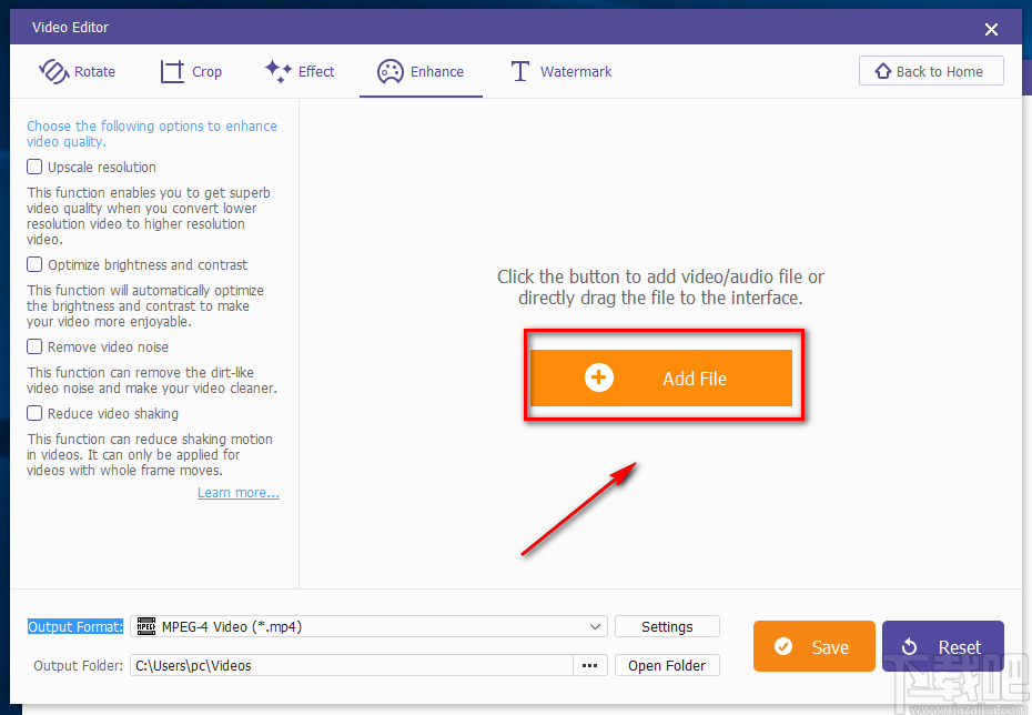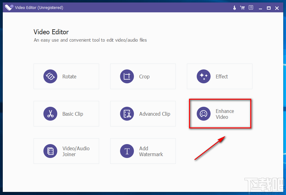 1.首先打开软件,在软件界面的右侧找到“Enhance Video”选项,该选项表示优化视频,我们点击该选项进入到视频优化页面。