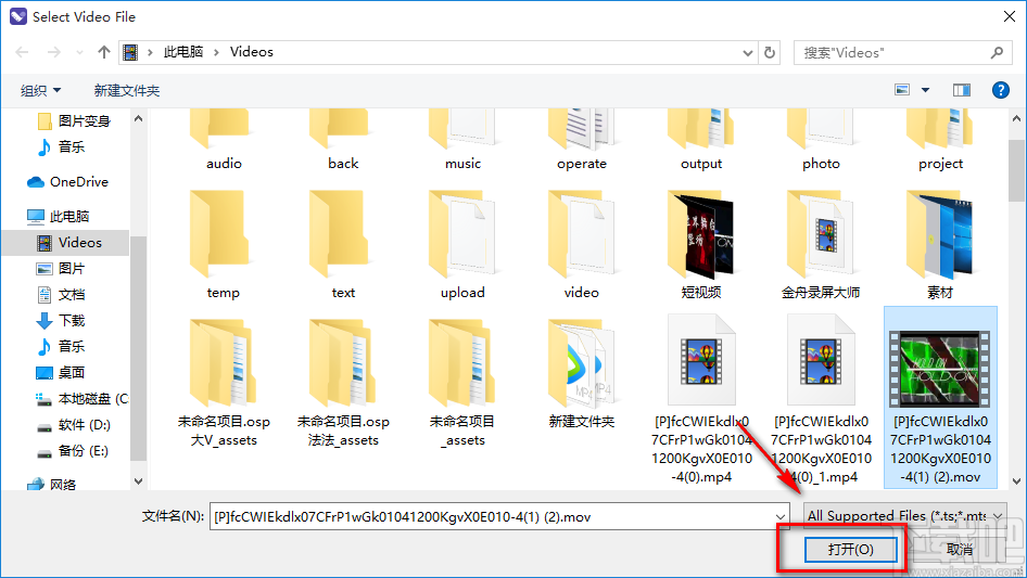 3.在文件添加页面中,我们找到需要减震的视频文件后,再点击页面右下角的“打开”按钮即可将文件添加到软件中。