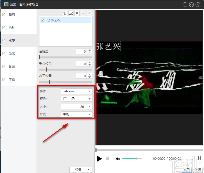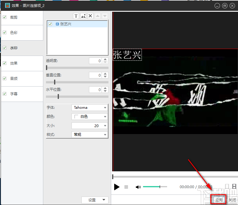 8.以上参数设置完毕后,在页面右下角找到“应用”按钮,我们点击该按钮就可以成功设置好添加水印的参数。