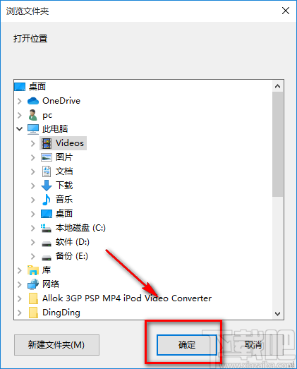 10.在文件保存路径选择页面中,我们找到文件的保存位置后,再点击页面右下角的“确定”按钮即可。