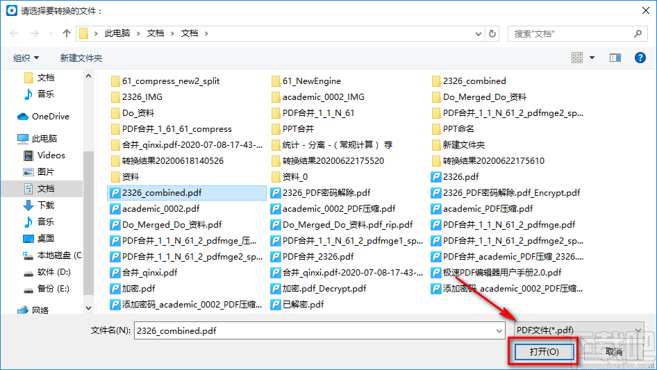 3.在文件添加页面中,我们找到需要压缩的PDF文件后,再点击页面右下角的“打开”按钮即可将文件添加到软件中。