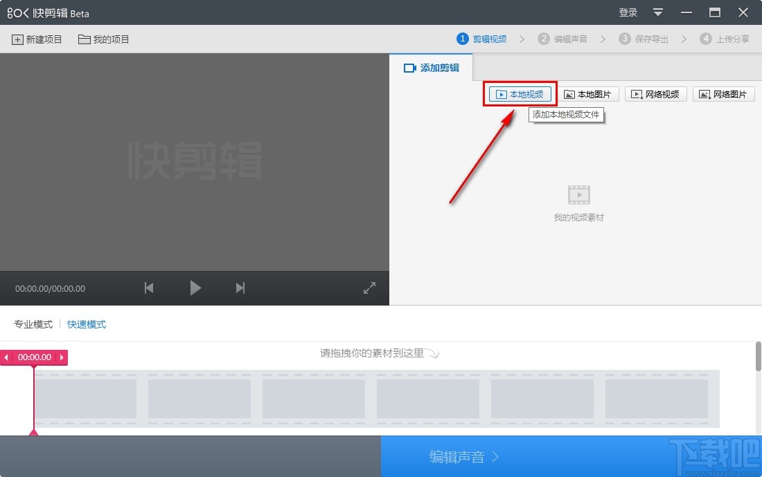 1.首先第一步我们打开软件之后,在软件界面中找到本地视频按钮,点击之后进入到选择本地视频的界面。