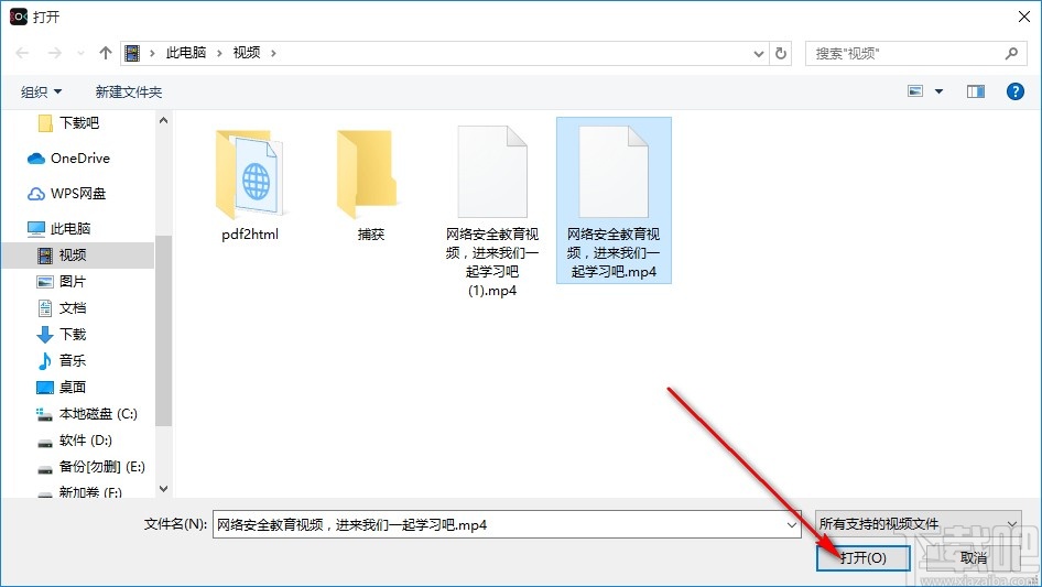 2.点击本地视频之后,在出现的界面中选择想要处理的视频文件,再点击界面右下角的打开按钮即可。