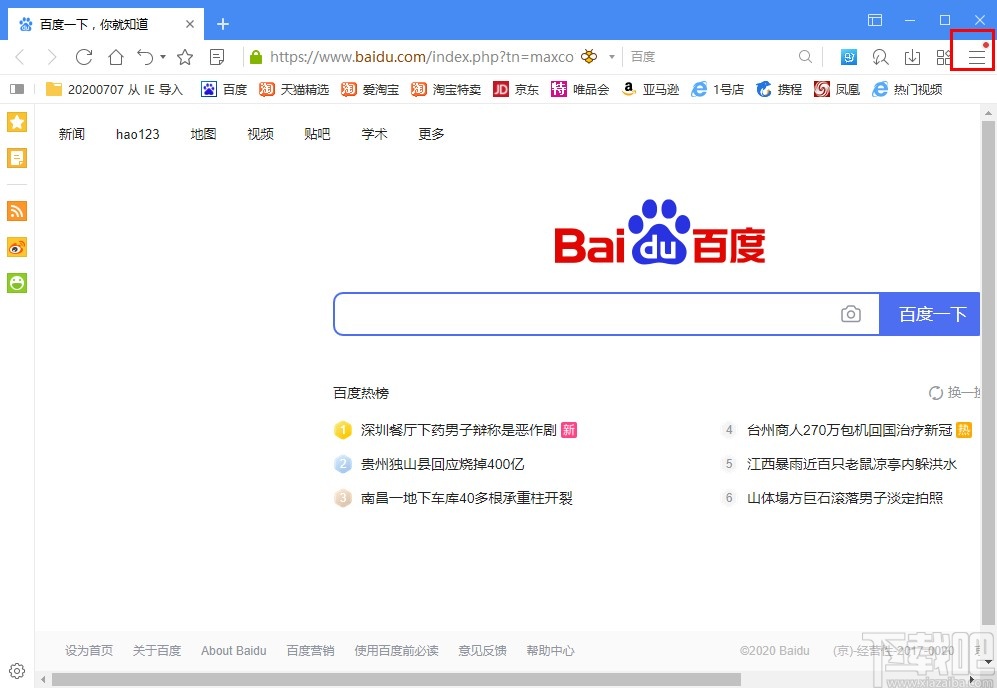 1.首先第一步我们打开浏览器之后在浏览器界面右上角找到菜单图标,找到之后点击这个菜单图标进入到其中。