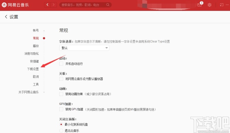 2.点击进入到设置界面之后,我们在设置界面左边点击下载设置选项,切换到下载设置界面当中。