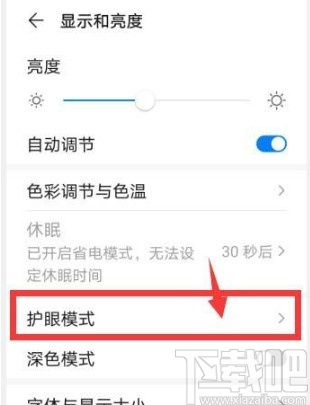 2.点击进入到显示与亮度的设置界面,找到护眼模式这个选项之后点击进入到其中。