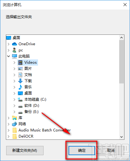 9.在文件保存路径选择页面中,我们找到文件的保存位置后,再点击页面右下角的“确定”按钮即可。