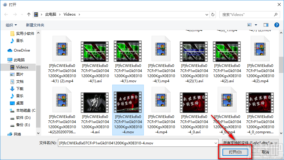 3.在文件添加页面中,我们找到需要剪切的视频文件后,再点击页面右下角的“打开”按钮即可将文件添加到软件中。