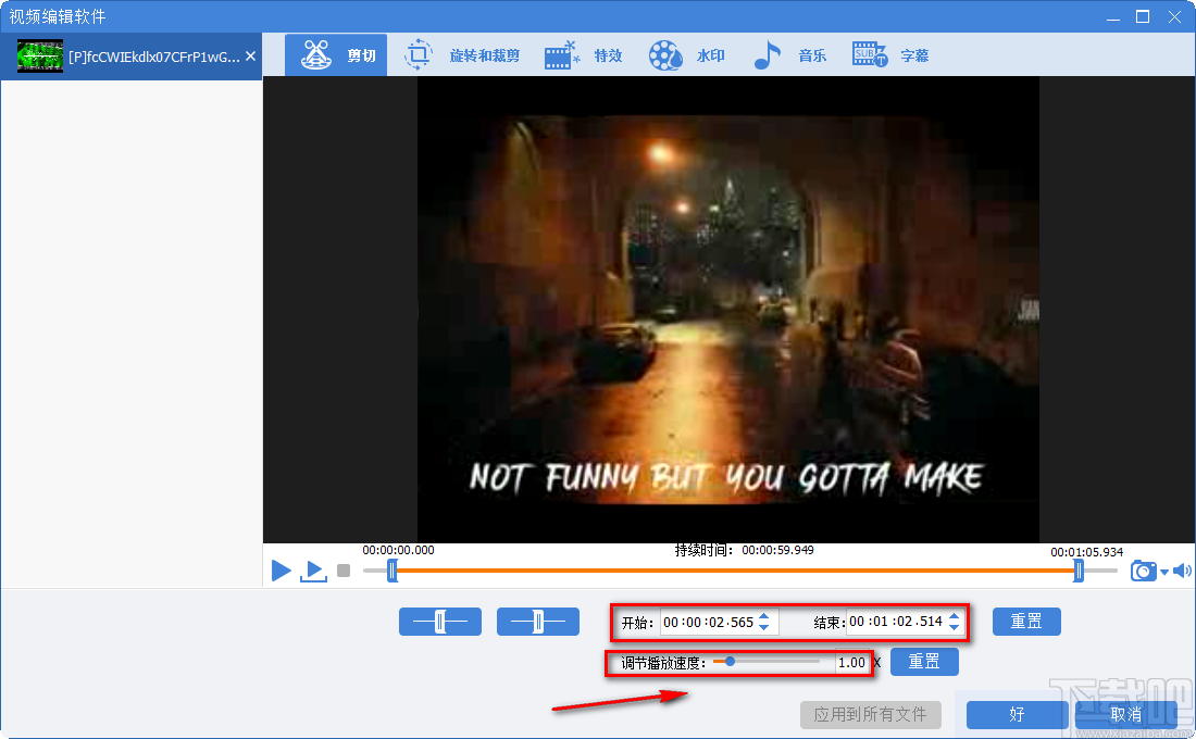 6.接着在进度条下方就可以看到视频开始和结束的时间;在进度条下方还可以找到“调节播放速度”选项,我们可以根据需要,拖动该选项后面的小圆光标对播放速度进行调整。