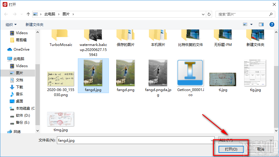 3.在文件添加页面中,我们找到需要添加文字水印的图片文件后,再点击页面右下角的“打开”按钮即可将文件添加到软件中。