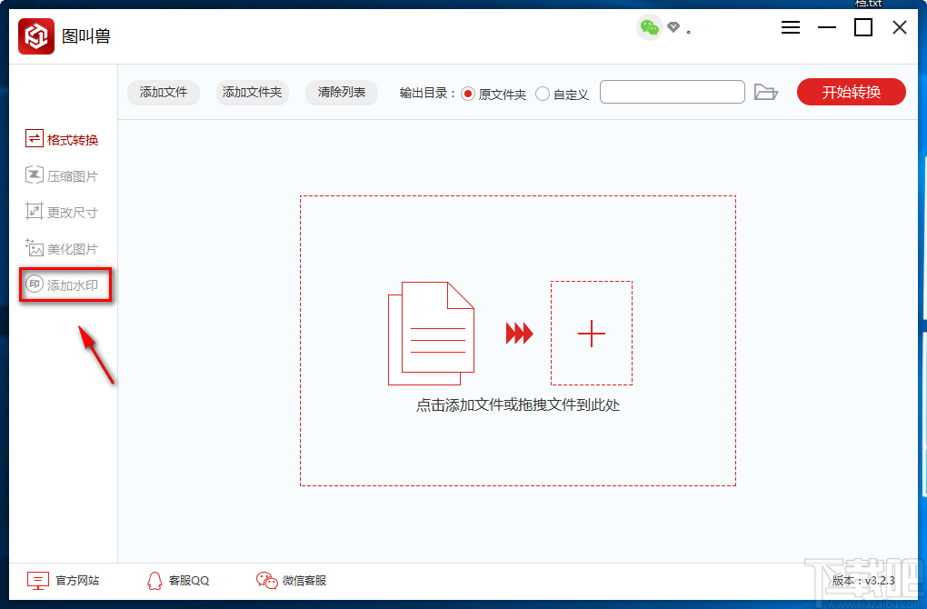 图叫兽是一款非常实用的图片处理软件,该软件界面美观时尚,不仅给用户提供了格式转换、压缩图片、更改图片尺寸的功能,还支持美化图片、给图片添加水印的操作,功能十分强大。我们在刷微博时,经常会看到一些带有水印的图片,这类图片可以很好的保护图片制作者的知识产权,使图片不能轻易的被他人盗取。这款软件也可以给图片添加文字水印,而且操作方法简单,那么接下来小编就给大家详细介绍一下图叫兽给图片添加文字水印的具体操作方法,有需要的朋友可以看一看并收藏起来。