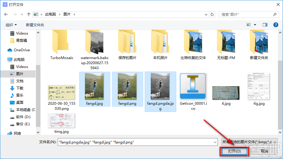 3.在文件添加页面中,我们按住Shift键,将需要旋转角度的图片文件全部选中后,再点击页面右下角的“打开”按钮即可将文件添加到软件中。