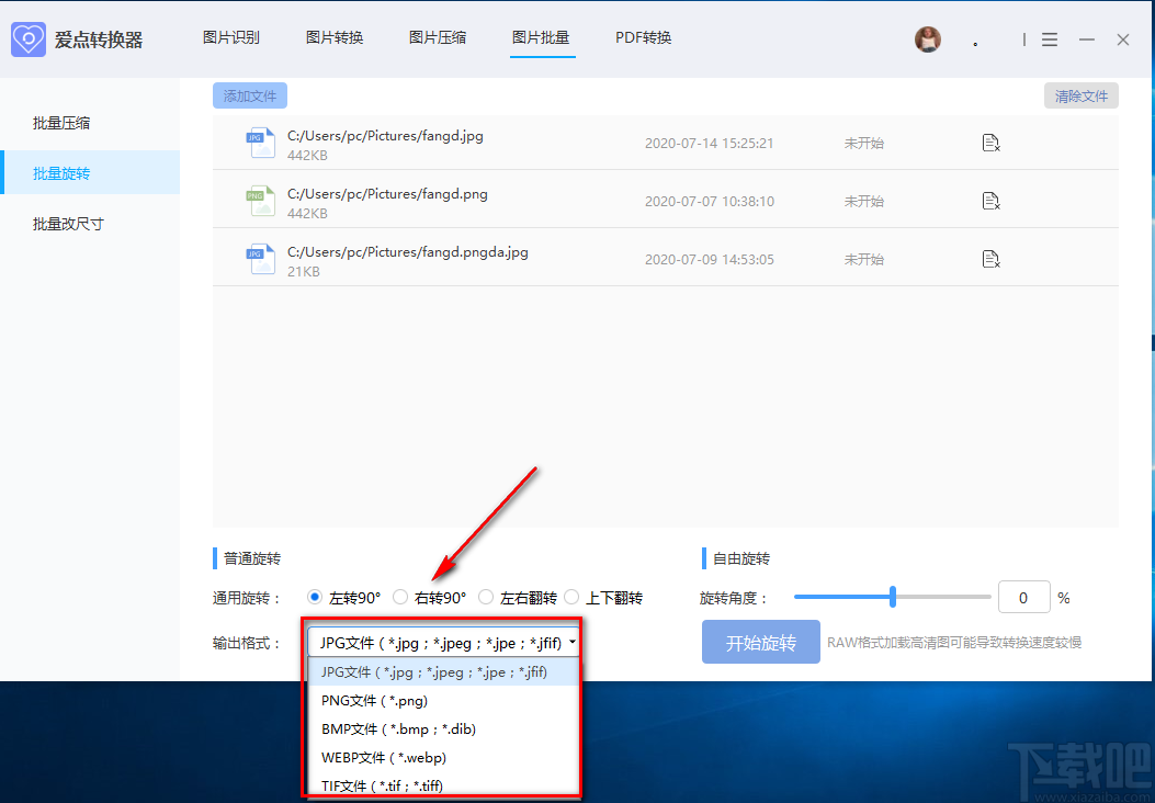 爱点转换器是一款非常实用的PDF转换以及图片处理软件,该软件不仅给用户提供了PDF文件格式转换的功能,还可以识别图片、压缩图片以及批量处理图片,功能十分丰富。我们在接收图片文件时,有时候接收到的图片是倒转的,这对我们浏览图片内容造成了很大的不便,这时就需要旋转图片使其恢复到正常角度。这款软件可以帮助我们批量旋转图片,而且操作方法非常简单,只需要几个步骤就能完成。那么接下来小编就给大家详细介绍一下爱点转换器批量旋转图片的具体操作方法,有需要的朋友可以看一看。