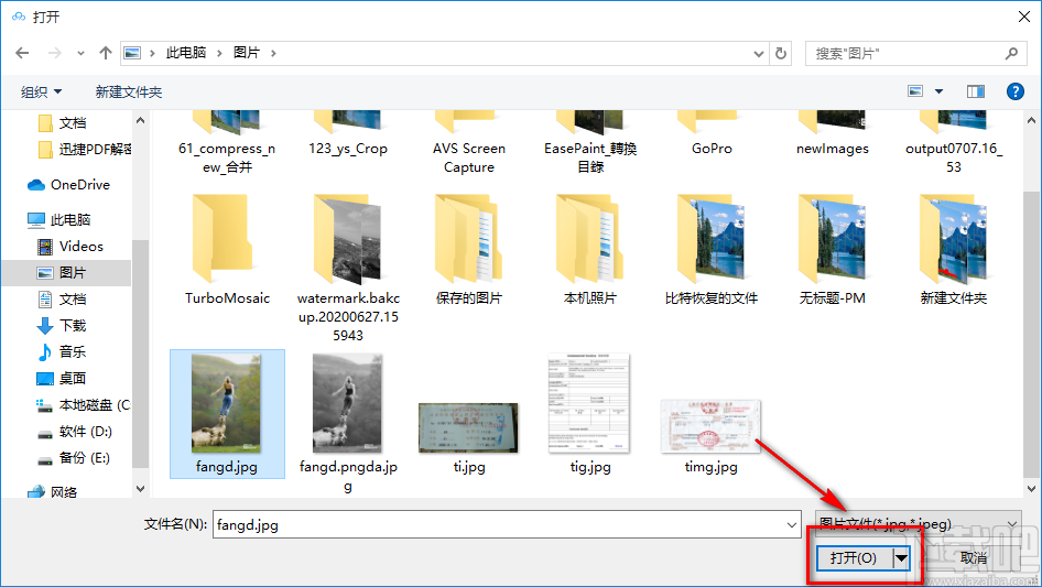 2.在文件添加页面中,我们找到需要压缩的JPG图片文件后,再点击页面右下角的“打开”按钮即可将文件添加到软件中。