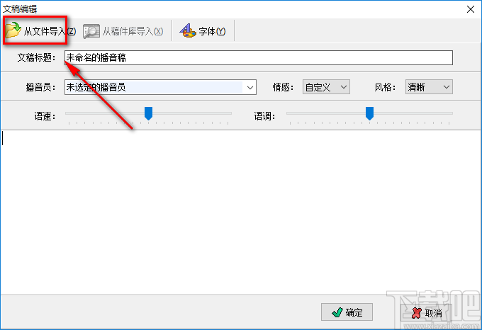 2.在文稿编辑页面中,我们可以在页面中的文本框中输入文稿内容,也可以点击页面左上角的“从文件导入”按钮进入文件添加页面;小编在这里选择“从文件导入”。