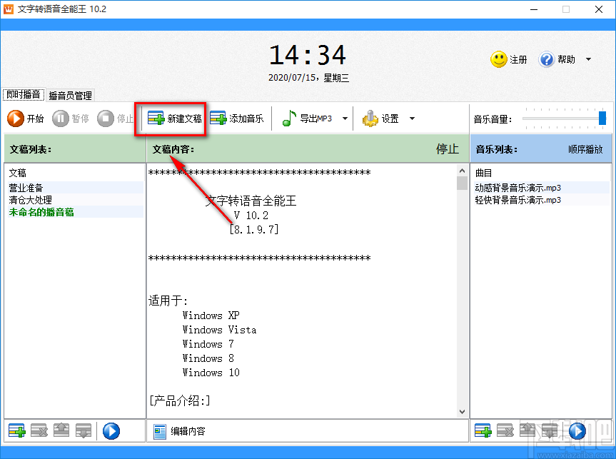 文字转语音全能王是一款非常好用的文字转语音软件,该软件可以帮助用户快速的将文字内容转换为语音文件,还可以给语音文件添加背景音乐,功能十分强大。我们在生活中常常需要将一段文字转为语音文件,如果我们选择自己朗读的方式将文字转为语音,不仅会受到口音、朗读情感的限制,制作起来也非常的吃力。但如果我们使用这款软件将文字转为语音,整个过程就会轻松快速的很多。那么接下来小编就给大家详细介绍一下文字转语音全能王将文字转为语音的具体操作方法,有需要的朋友可以看一看。