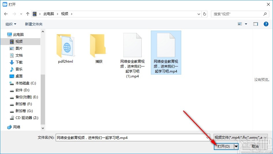 2.点击这个添加文件按钮之后,下一步我们在出现的选择文件界面中,选中想要压缩的视频文件之后点击右下角的打开按钮。