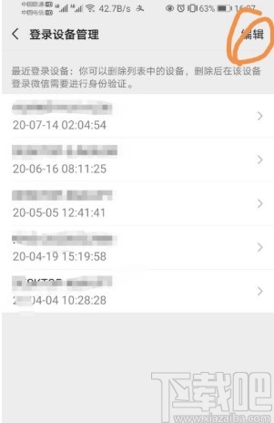 4.点击进入到这个登录设备管理界面之后,点击界面右上角的编辑选项,进入到编辑功能界面当中。