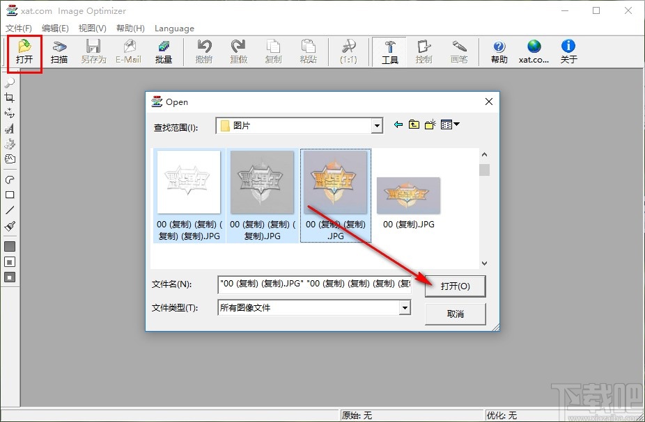 1.首先第一步我们打开软件之后,点击界面左上角的打开图标,然后在出现的界面中可以选择想要处理的图像,选中之后点击打开按钮即可。