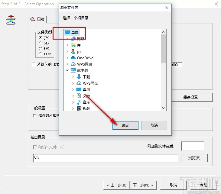 5.点击这个浏览按钮之后接下来在打开的选择文件输出保存界面中,选中输出目录之后点击右下角的确定按钮即可。