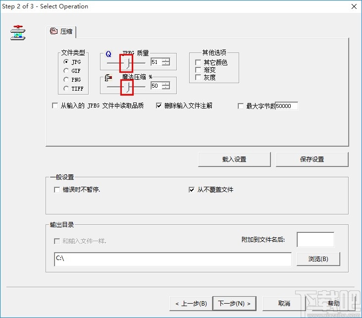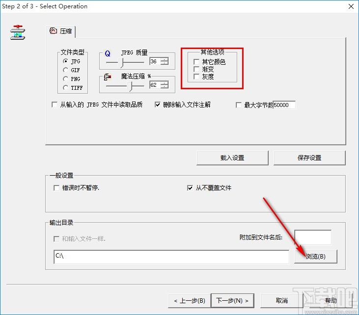 4.设置好压缩图像的比例之后,在其他选项位置可以根据自己的需求来选择图像其他颜色,接着点击下方输出目录的浏览按钮。