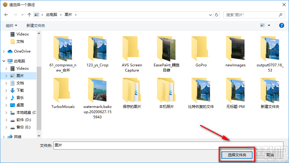 4.在文件保存路径选择页面中,我们找到文件的保存路径位置后,再点击页面右下角的“选择文件夹”按钮即可。