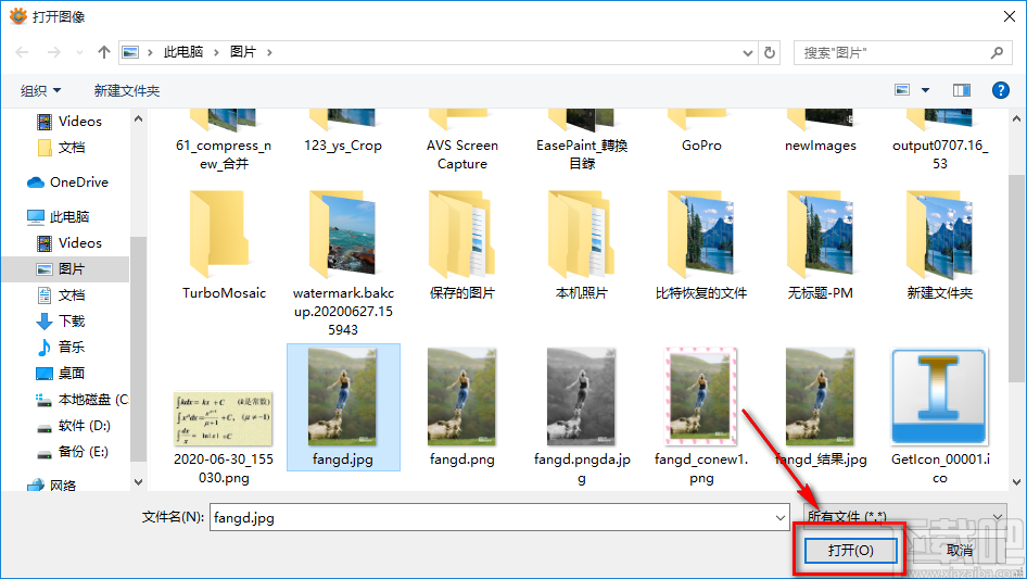 2.在文件添加页面中,我们找到需要转换格式的JPG图片文件后,再点击页面右下角的“打开”按钮即可将文件添加到软件中。