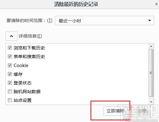 5.最后设置好清理选项和时间范围之后,点击窗口中的立即清除按钮就可以清理浏览器的缓存和一些历史记录了。
