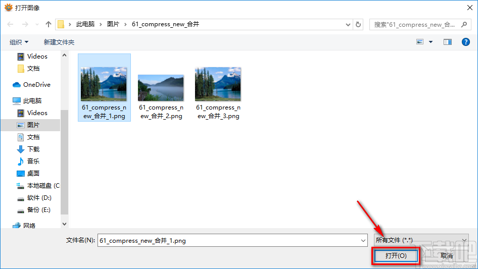 2.在文件添加页面中,我们找到需要添加水印的图片文件后,再点击页面右下角的“打开”按钮即可将文件添加到软件中。