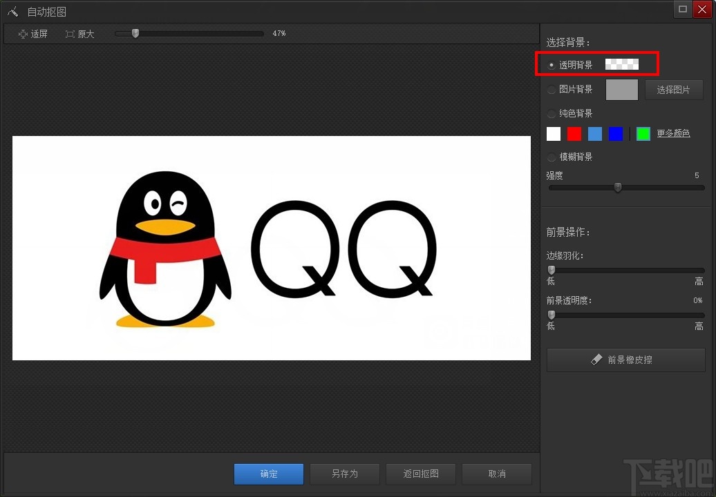 5.点击替换背景按钮之后,首先可以选择使用透明背景,选择透明背景的话保存图片时保存为png格式即可。
