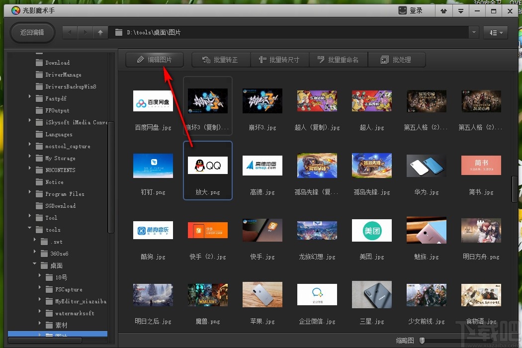 2.进入到选择图片的界面之后,我们选中想要处理的图像之后点击上方的编辑图片这个功能按钮。