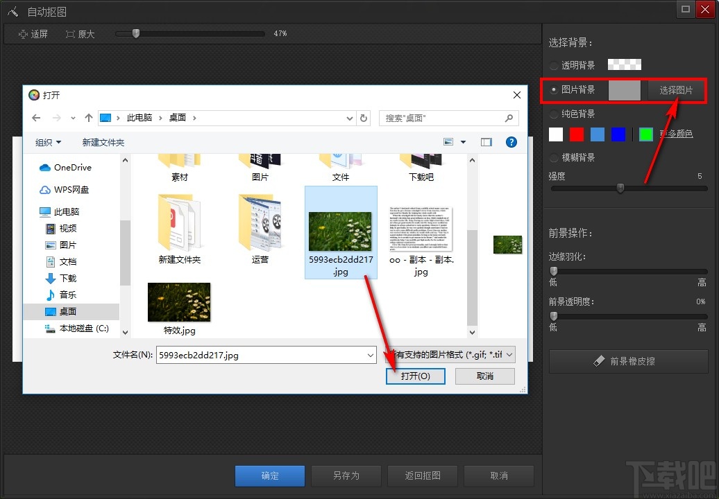 6.另外如果我们选中图片背景的话,需要点击选择图片按钮,在打开的选择图片界面中选择想要设置为图片背景的背景素材。