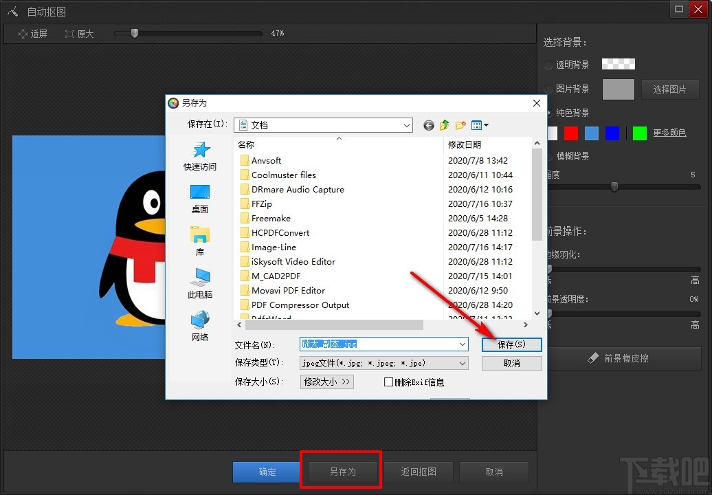 8.最后我们根据自己的需求设置好添加背景的方式之后,点击下方的另存为按钮可以将更换背景之后的图片保存下来,在另存为界面选择好输出保存位置和设置好文件名称之后点击保存按钮即可。
