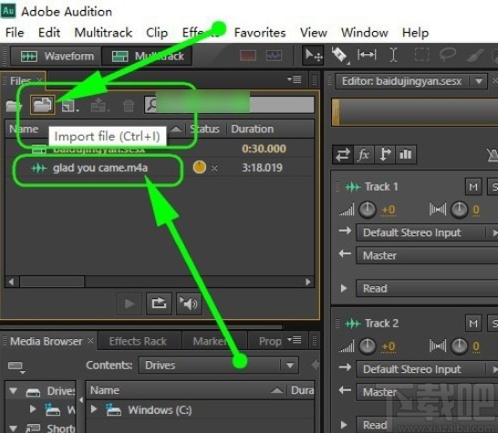 3.设置完成之后我们点击左上角的这个Import file这个导入文件图标,点击之后将需要剪切的音频导入到软件中。