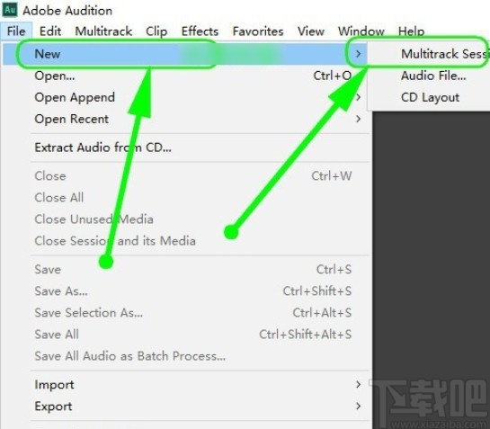 1.首先第一步我们打开软件之后点击File文件选项卡,然后在出现的选项中选择New,之后再点击multitrack。